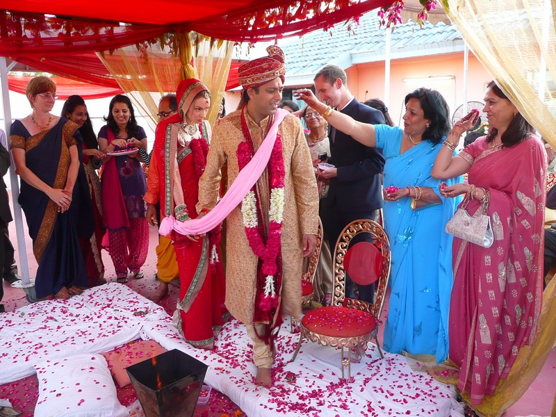Avec la famille et les amis proche, ça commence avec la cérémonie de l'échange de bagues (équivalent des fiançailles chez nous, sauf qu'ici ça a lieu quelques jours avant le mariage seulement).